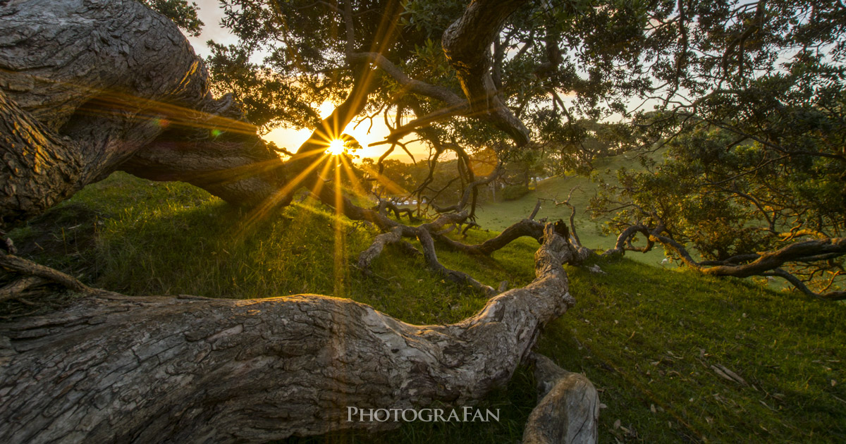 逆光の太陽光など強い光をキラッとした光条にして表現したい時は、絞り値を大きくして絞りこみます。絞り優先モードなら光条の出方をみながら絞りを微調整することができます。